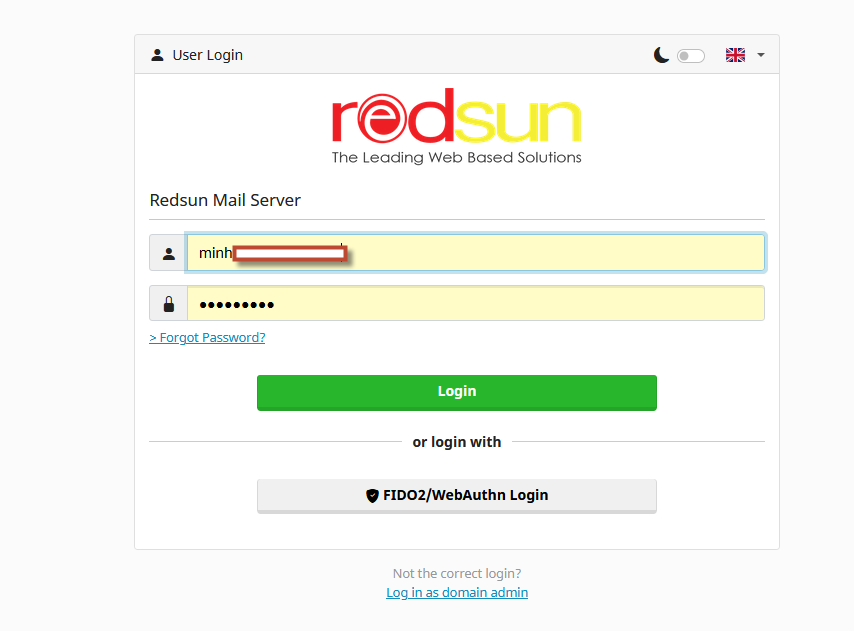 Tại giao diện Webmail, bạn nhập tài khoản và mật khẩu của địa chỉ email mới tạo ở trên sau đó click vào “Login” để đăng nhập :